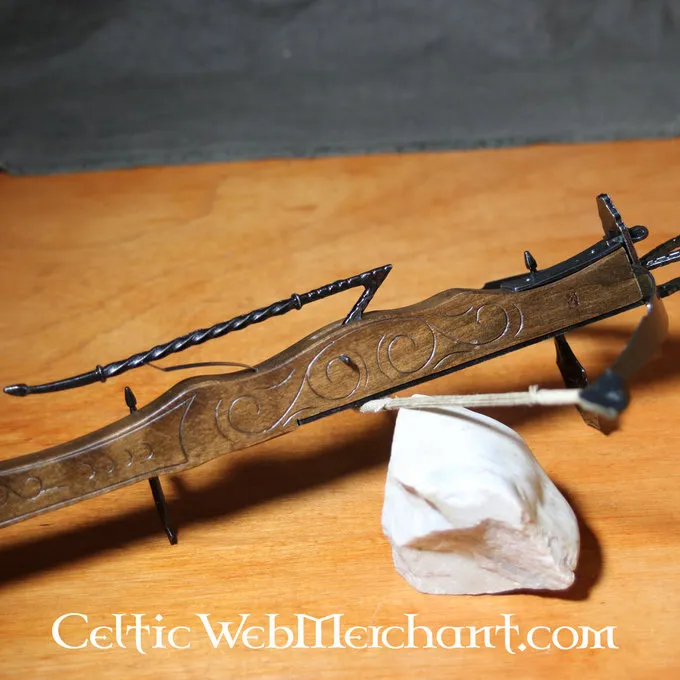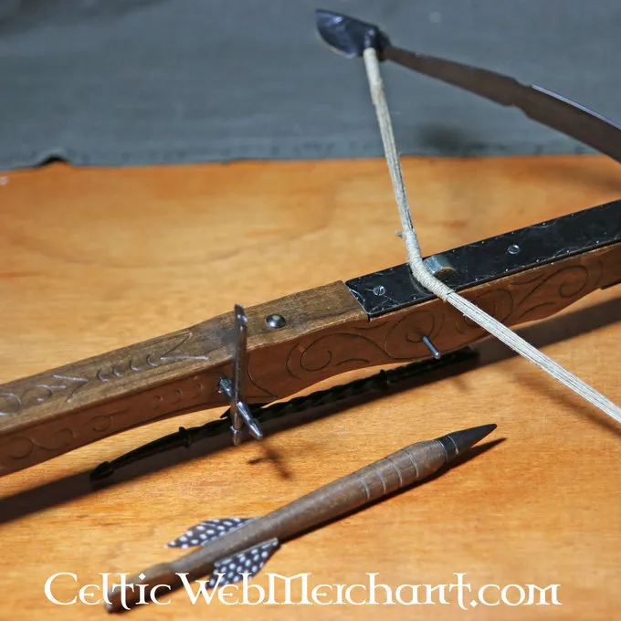 La longueur de cette arbalète décorative est de 62 cm. Il est muni de membres en fer. La flèche est incluse.