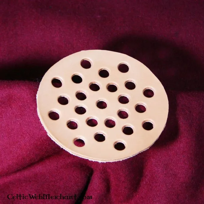 Disques comme celui ont été utilisés entre le 12ème et 16ème siècle dans carquois de lin. Les flèches peuvent être placés dans les disques, de sorte qu’ils ne se emmêle pas et peuvent être retirées facilement. Le linge est un peu plus longue que l’extrémité de la flèche, de sorte que le sac peut être fermé afin de protéger les flèches contre la pluie.