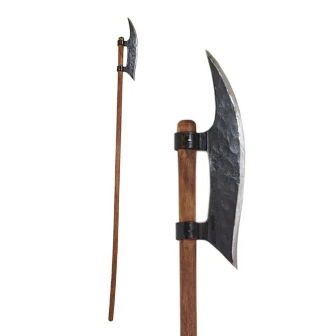 Détails de produit: Longeur: 180 cm / Dimensions de fer: 41×13 cm / Matériel: EN45 acier à ressort / Tranchant: semi-tranchant / Hampe incluse: oui / Basé sur un original historique: oui /