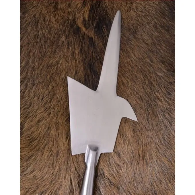 Détails de produit: Dimensions de fer: 54 x 23 cm / Dimension d’oeil: 3.1 cm / Poids: 1100 g / Matériel: EN45 acier à ressort / Tranchant: semi-tranchant / Hampe incluse: non / Basé sur un original historique: oui /