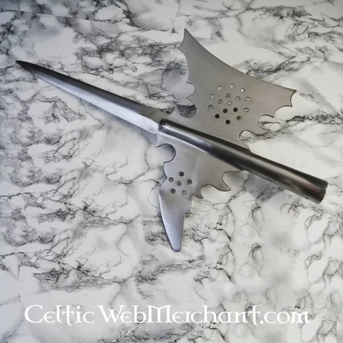 Détails de produit: Dimensions de fer: 50 x 30 cm / Dimension d’oeil: 3 cm / Matériel: EN45 acier à ressort / Tranchant: semi-tranchant / Hampe incluse: non / Basé sur un original historique: oui /