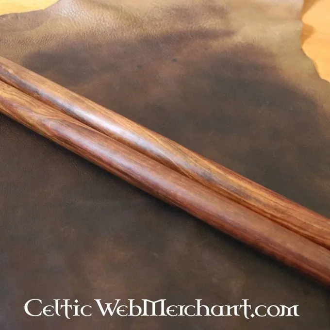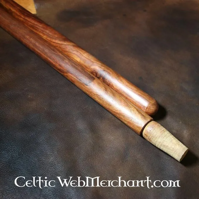 Cet arbre de bois de rose a une longueur de 180 cm. Il est vissé au milieu de sorte qu’il ne est pas adapté pour les batailles.