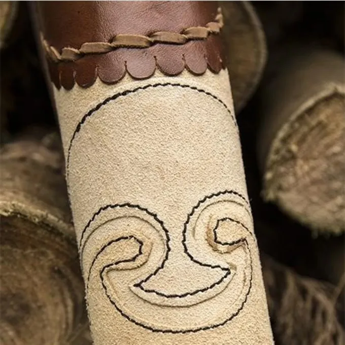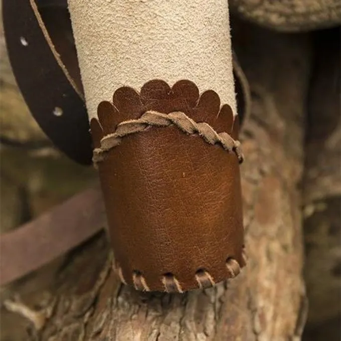 Ce carquois luxueux en cuir de vachette durable et en cuir suédé est parfait pour la reconstitution, le GN et le cosplay. Il peut être porté sur l’épaule ou sur le dos grâce à la bandoulière réglable. Le devant a une jolie décoration et le carquois a de beaux détails travaillés à la main, comme les coutures sur le dos qui lui donnent un aspect historique fait à la main.