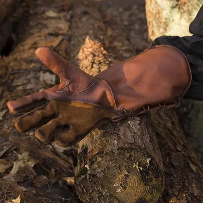 Ces beaux gants en cuir sont fabriqués à partir de cuir tanné végétal de haute qualité. L’annulaire et le petit doigt sont fabriqués dans un cuir de velours plus doux. Le côté a des lacets en cuir pour ajuster le gant supplémentaire à votre taille.