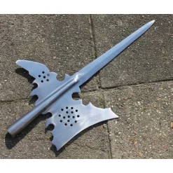 Cette hasta est en métal et vient sans une tige en bois. Il est semi-tranchant, il ne convient donc que pour un usage décoratif. Vous pouvez également le blanchir.