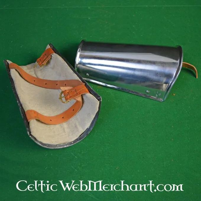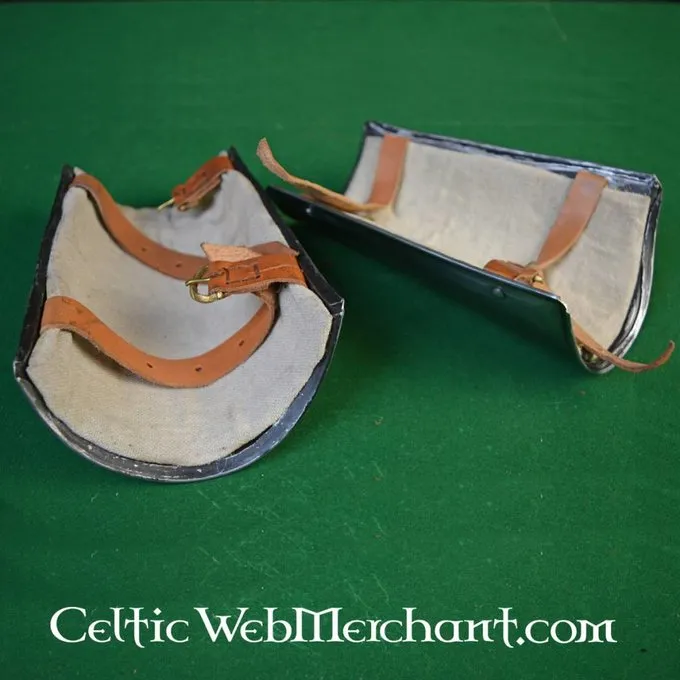 Brassards solides pour les batailles de reconstitution. Ces brassards sont faites de 1,2 mm d’épaisseur en acier et ils ont une incrustation textiles et du cuir sangles pour fixation.