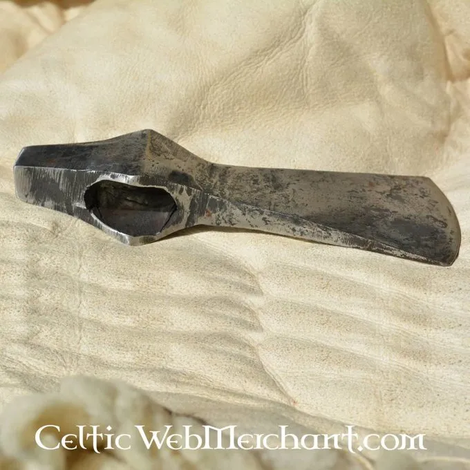 Cette hache, est complètement forgés à la main. Le bord est émoussé sorte qu’il peut être utilisé à des fins de reconstitution. La longueur de la Axehead est 18,5 cm, la lame est de 6 cm et l’oeil mesure 25 x 35 mm. Il pèse 550 grammes.