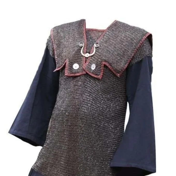 Cette cotte de mailles est constitué d’anneaux en acier d’épaisseur 1 mm avec un diamètre interne de 6 mm, tout comme le hamatae loricae d’origine. Il permet de prendre près de deux mois pour produire un hamata lorica cause des petits anneaux. Ce haubert était de 30% plus léger que hauberts plus tard. Bagues rondes perforées sont alternées avec des anneaux rivés plats. Le hamata lorica est livrée avec un morceau de l’épaule avec un bord en cuir.